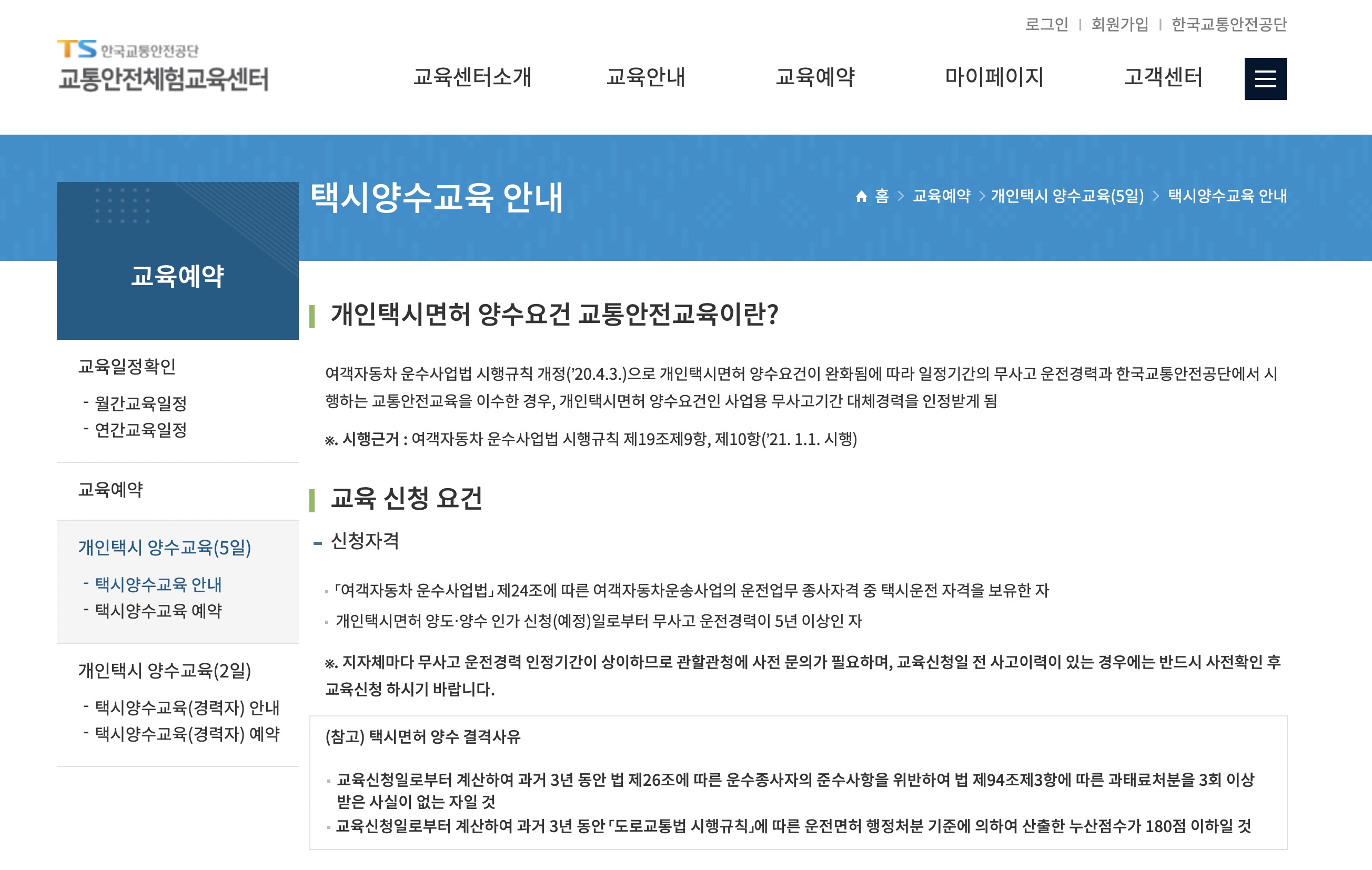 - 개인택시 양수교육 신청 및 절차