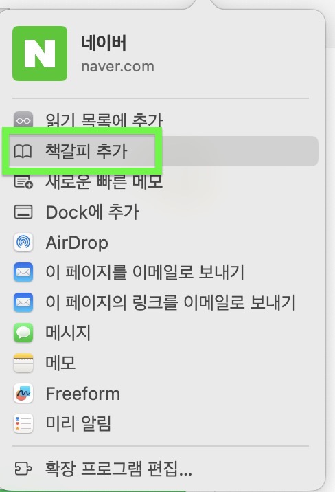 네이버 책갈피 추가하기