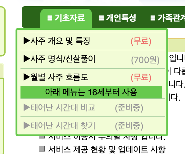 사주풀이 도우미에서 무료로 제공되는 서비스는