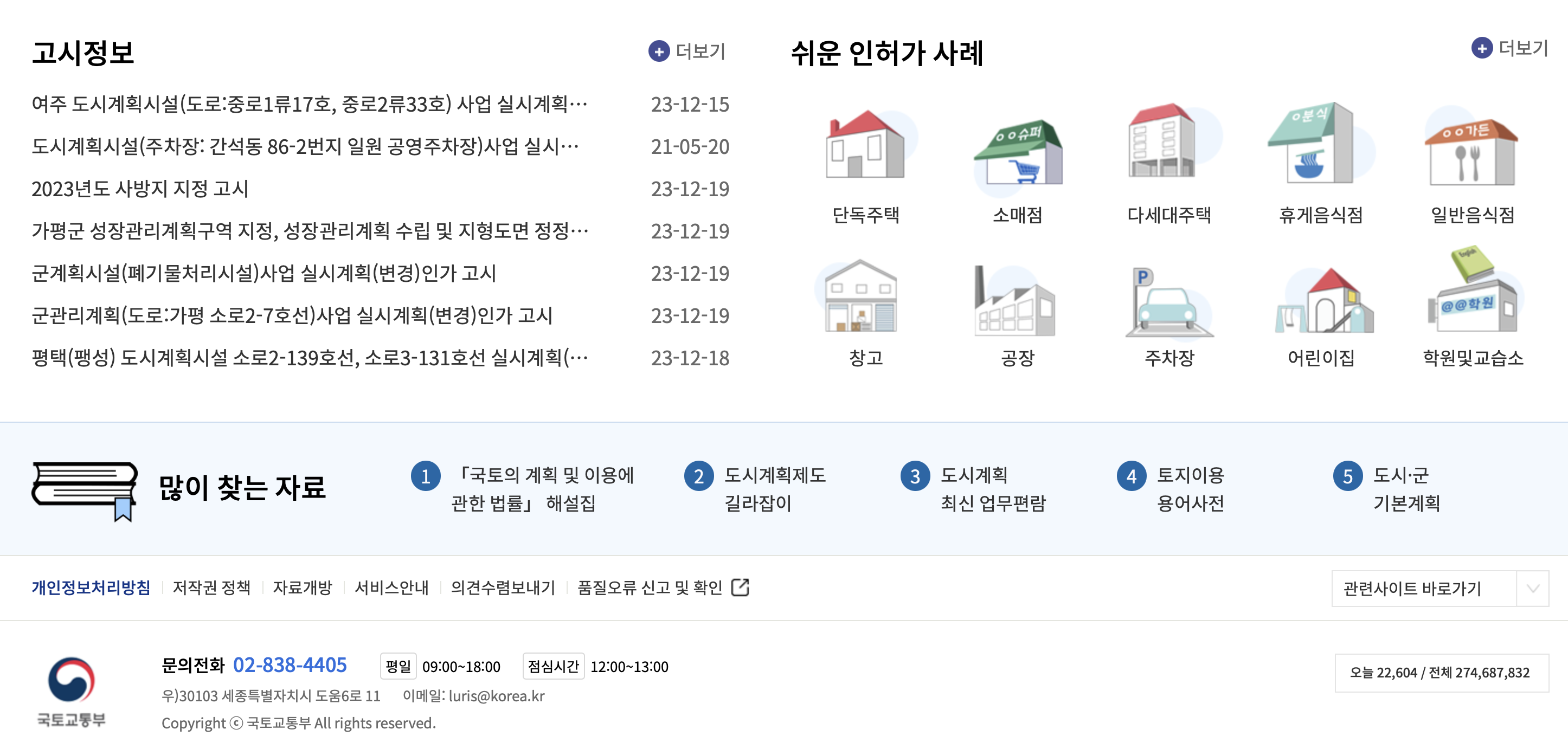이음지도, 용어사전, 질의회신사례, 규제법령집, 주민의견청취 공람, 도시계획통계 제공