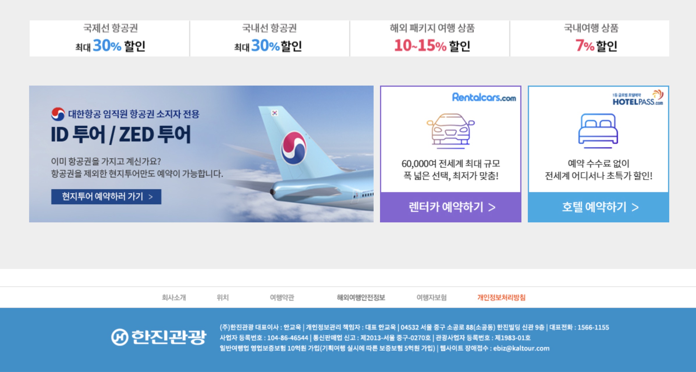 한진그룹 임직원 출장 여행 서비스 이용 안내