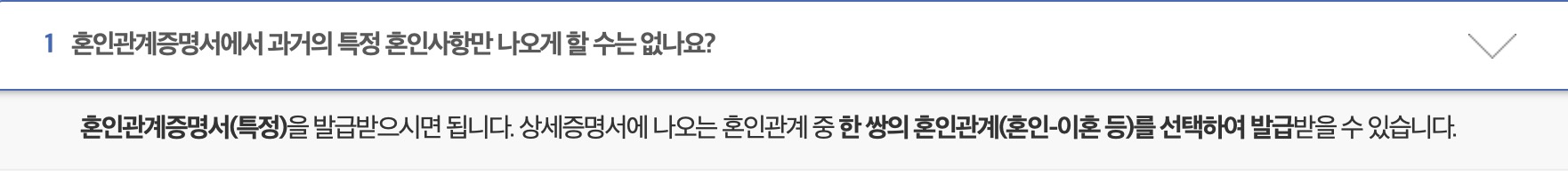 1. 과거의 특정 혼인사항만 나오게 할 수 있나요?
